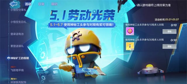 劳动光荣,也不要忘了放松身心!醉心赛车的神秘工头,在工作之余也踏上赛场!5月1日-5月7日,使用神秘工头车手参与多人对局,领富豪神秘工头(30天)、相约51气球!