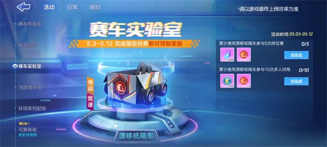 体验漂移纸箱车完成活动,还可领取专属车贴等珍稀奖励!
