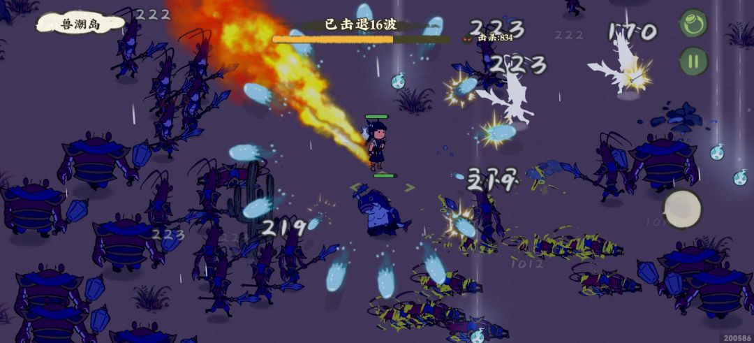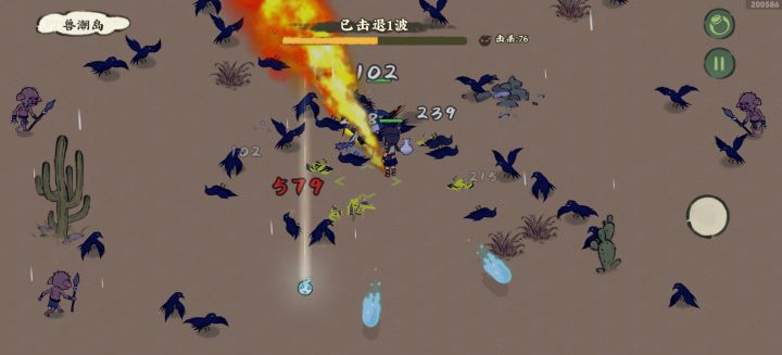 有土桃壶、符纸之类群攻的武器最好!我这个是土桃壶的技能,释放冰块儿的,我还用了灯,因为是朝前攻击的就必须一直操作轮盘对着怪,我觉得是壶好用。(仁者见仁吧)
