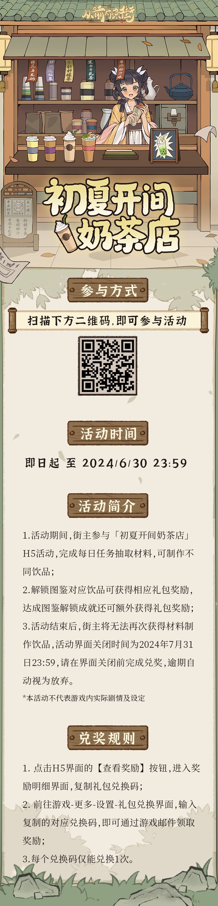 从前有条街「初夏开间奶茶店」H5活动已开启,完成饮品图鉴解锁获得礼包兑换码,10连抽、限定称号等街主来拿!