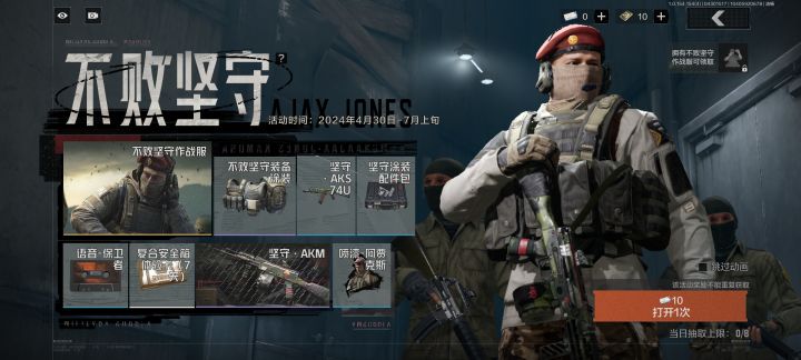 “不败坚守”不败坚守这个新的军需武器箱是一个人物角色皮肤。是阿贾克斯的皮肤。现在阿贾克斯也是进入了军械库里面,新的皮肤外形非常的好看。很适合战斗风的。作为收藏展出也是很不错的。并且还有一把新的akm皮肤。也是让人看了非常好。