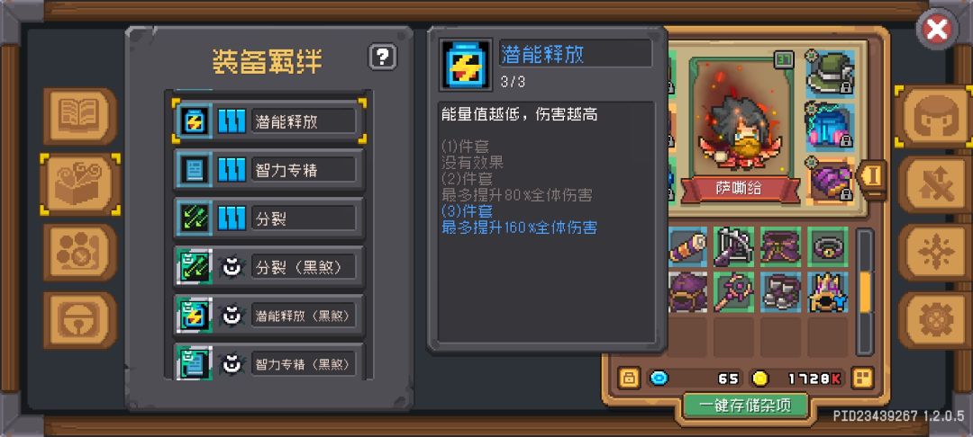 接下来把六个装备的第三羁绊尽刷出三潜能释放和其他的有用的羁绊就行了。说起来挺轻松的哈哈哈哈
