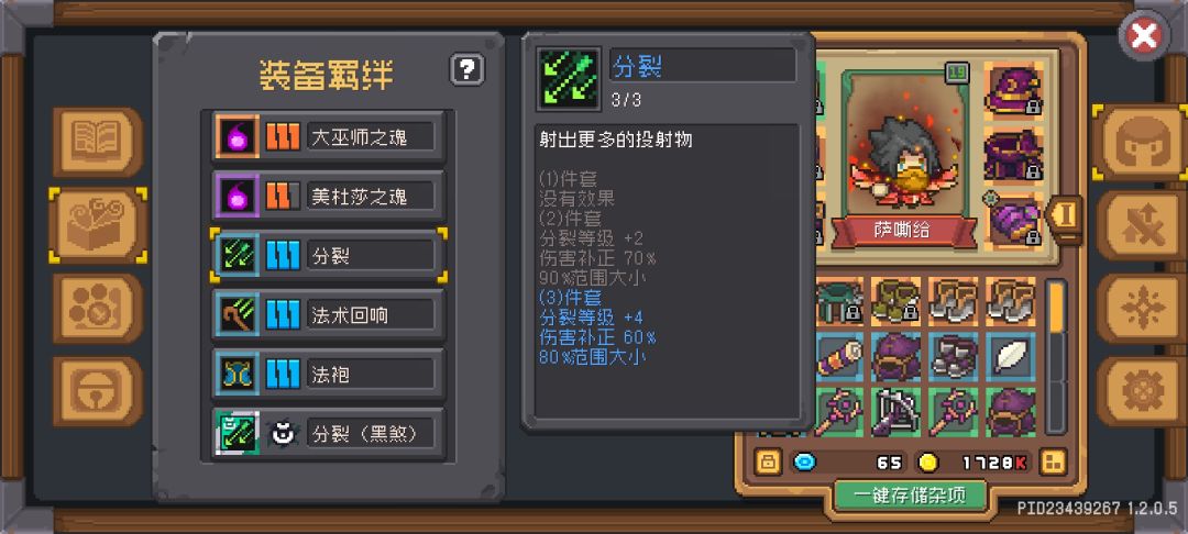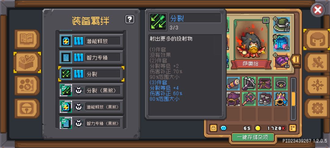 ③分裂与重弹的抉择:高等级三角羁绊保证了我们可以有足够多的羁绊位置,我目前五级重弹,衣服我要洗一个分裂,然后戒指洗一个潜能,我就能开2分裂3潜能了,到了七级的话,再把鞋子洗成分裂,达到3分裂,但是我可能不会这样干,我可能会洗潜能然后转为黑煞潜能。因为经过我自己的测试(不一定准确),3重弹2分裂>3分裂2重弹,在此基础上我感觉3重弹+2分裂+黑煞潜能>3重弹+3分裂,因此我就会这样去洗,只开2分裂。其实还有一个最优解,就是给两个装备洗上“分裂等级+1”词条,这样两分裂就有3分裂的效果了,并且伤害修正只为2分裂的70%(其实我记得昨天看还是80%的)。