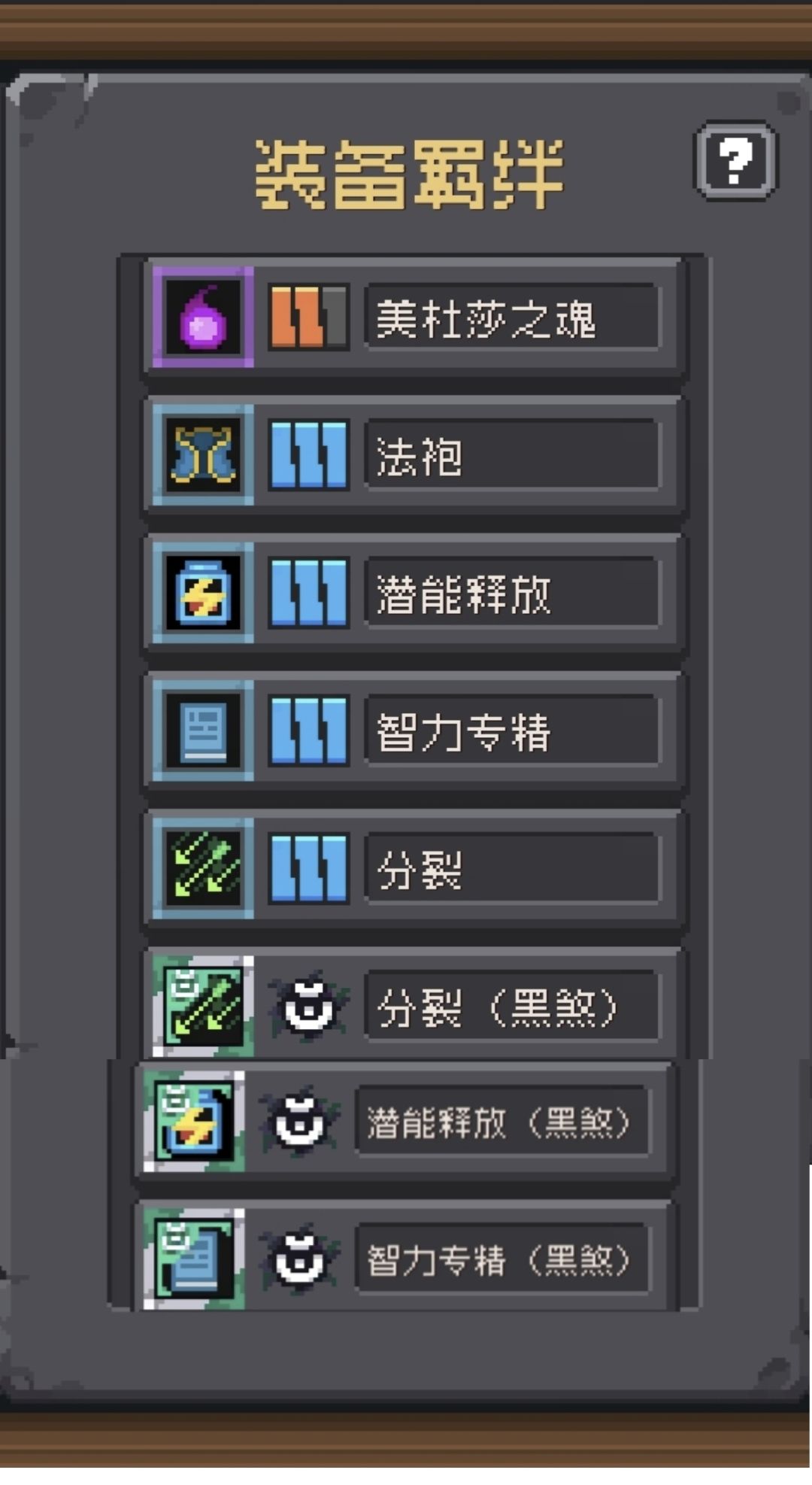 在前期凑蓝绿装时,可用的其他羁绊我个人感觉包括:智力专精,法术回响,属性暴击,法袍(三布甲自带),黑暗核心等。具体看大家能刷到什么。