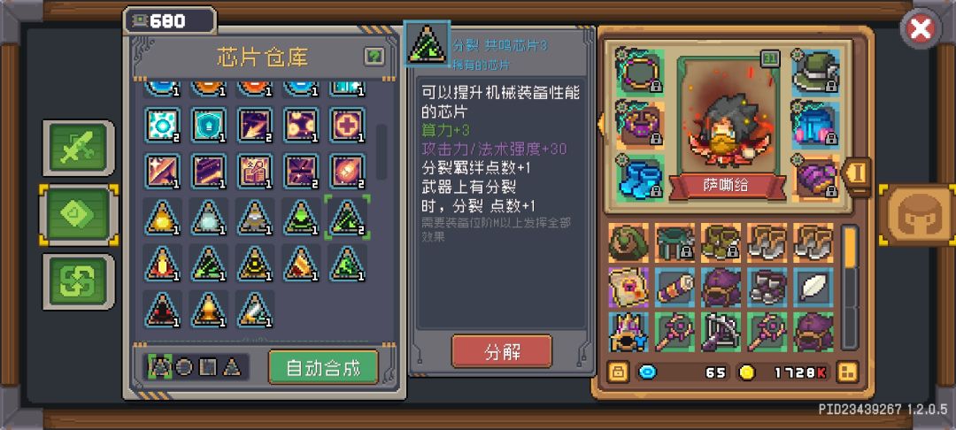芯片和零件获取除了开投影宝箱外还可以通过分解机械装备获得,对于羁绊型芯片,分解拥有对应羁绊的机械武器装备会从装备已有的羁绊里随机产生芯片,注意,只能是机械装备,普通装备没有。所有的芯片都可以升级,像云顶、金铲铲一样,三合一升级。等级越高越吊,比如五级三角形除了提供单个三级羁绊外还能提供的武器上其余两个羁绊+1,这就是排行榜上的羁绊为啥这么多的原因。但是零氪的话。。。。反正五级我想想头都大,更别说八级了,你能肝钥匙也不够你肝啊。。慢慢玩吧。