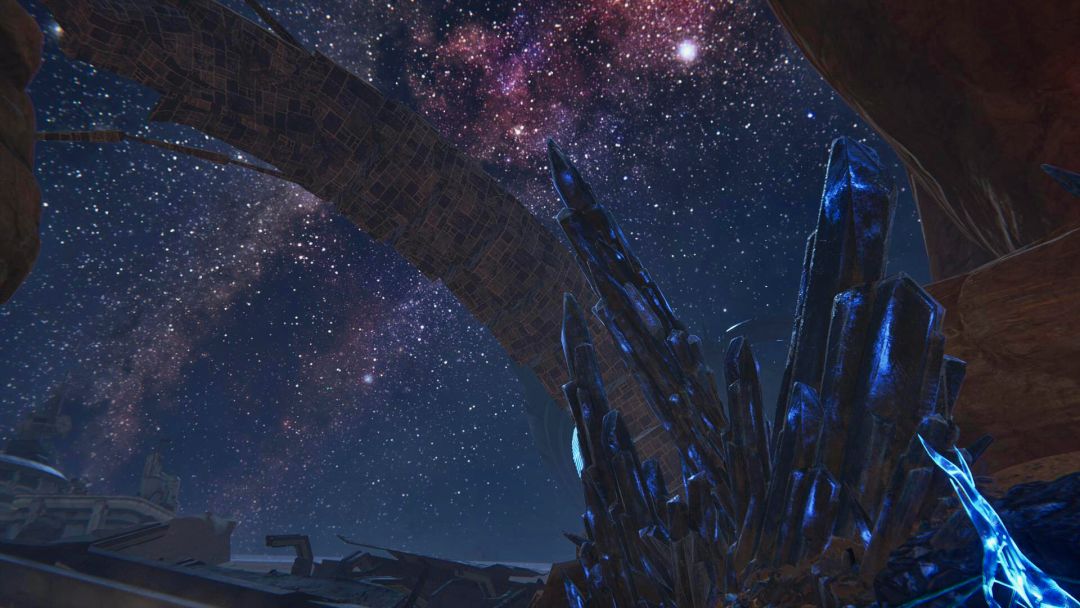 来到这里,自然不能错过夜晚的星海!在戈壁洞穴的出入口,晶石上流转着幽幽的蓝光~向上望去,星河灿烂!你说,要是在星空下许愿“暴富”,会实现吗?
