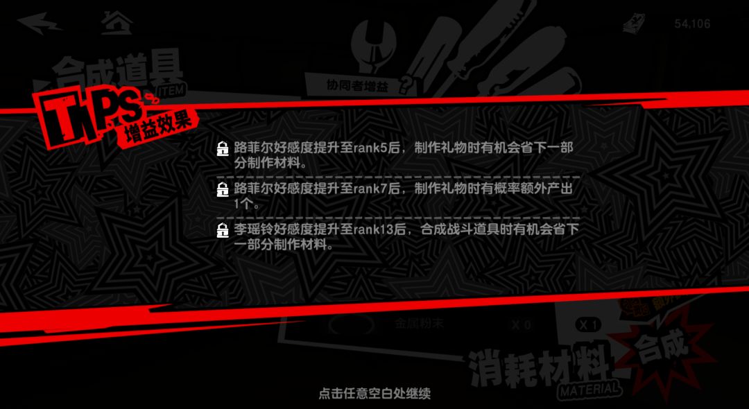 一,工作台(合成道具)玩过的小伙伴不难发现,本作的协同者系统与P5R的社群系统是对应的,想要达成八艘跳(脚踏八条船)的壮举,最好的方法自然是多刷火箭多送礼物。