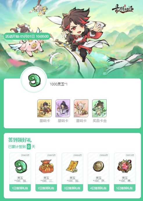 福利一:🎉五一签到,集卡领1000灵玉🎉
