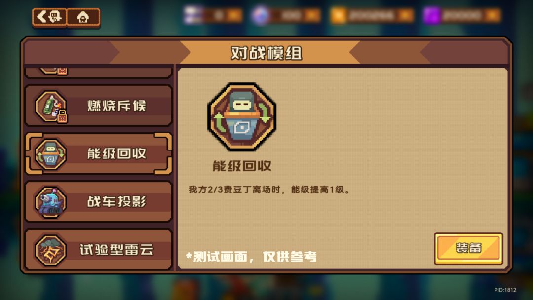 3.新增对战模组:【能级回收】【战车投影】【试验型雷云】