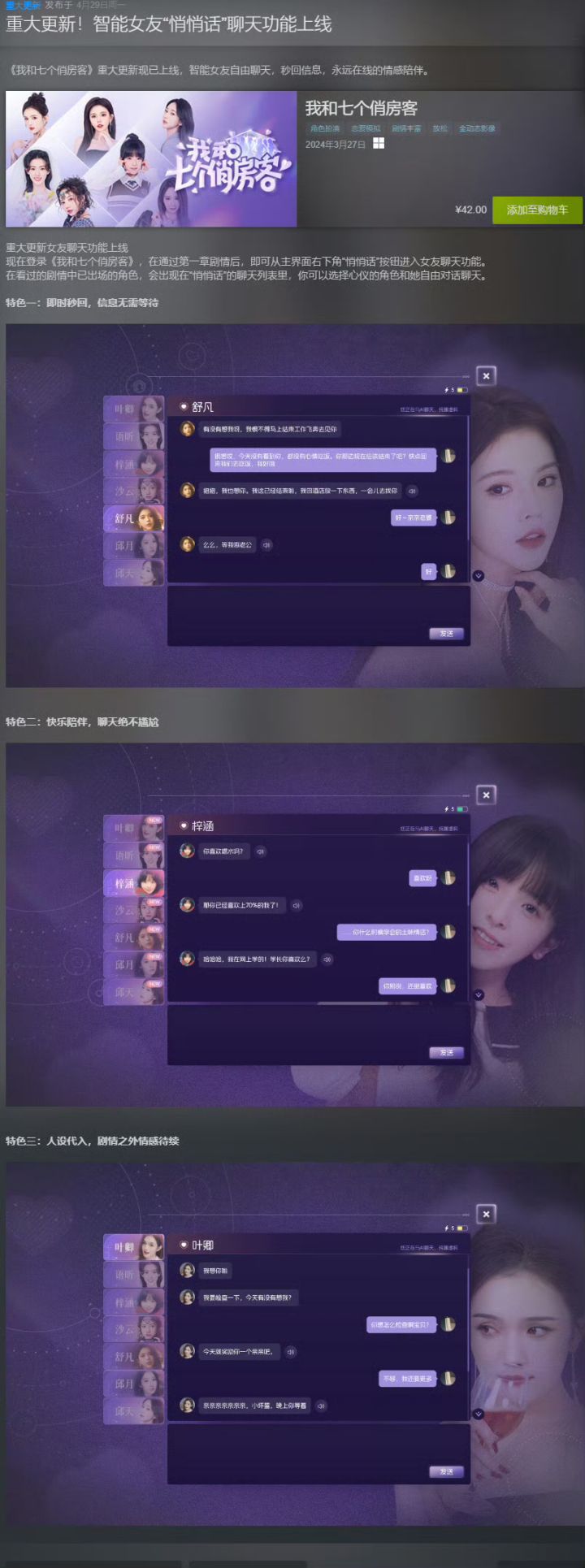 真人互动影像游戏推出AI女友聊天功能