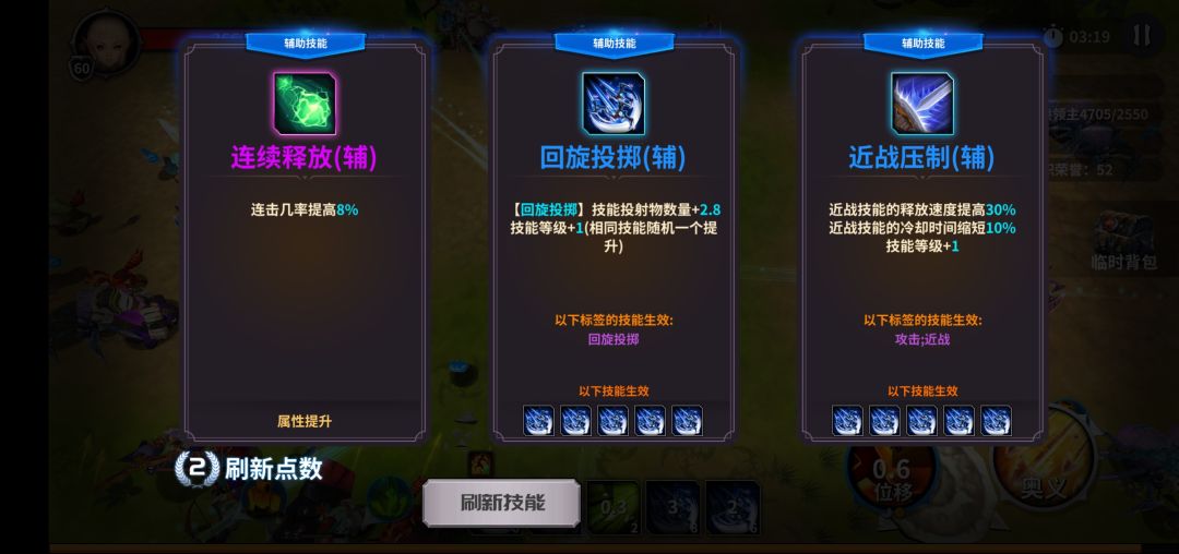 主动技能‘回旋投掷’必选核心输出,多选投射物数量,其次伤害和cd