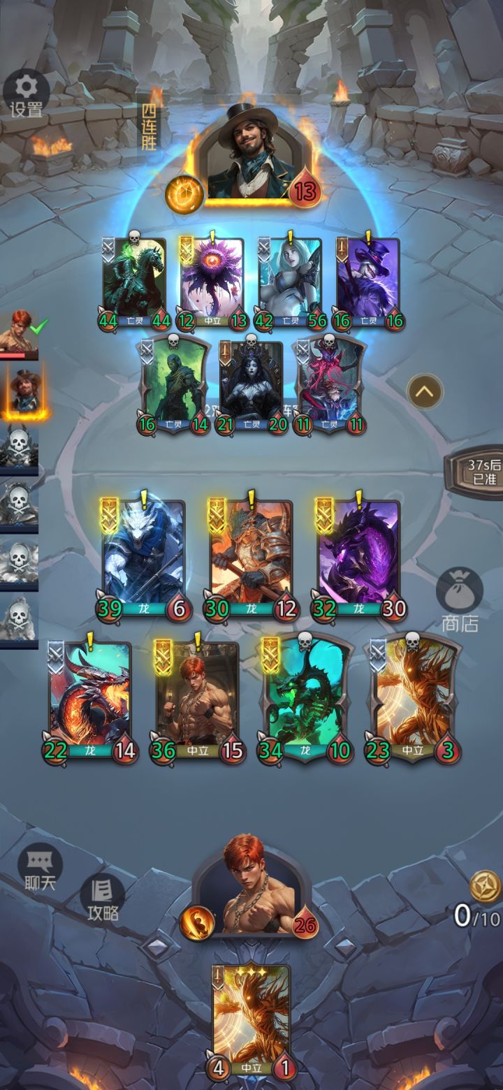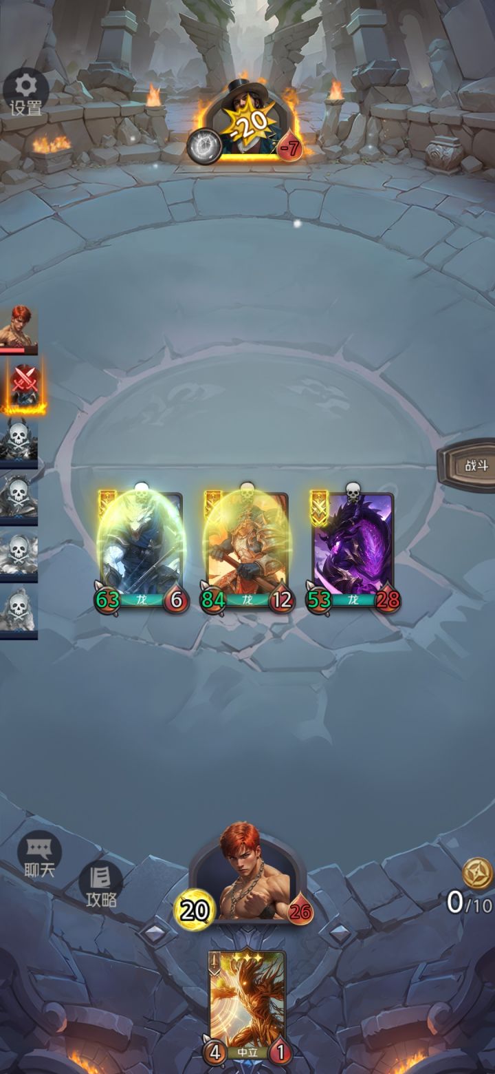 前期没不死骨龙的时候,就用星辰龙,然后破坏龙放2号,攻击对方触发星辰龙技能眩晕1号和3号,这样必然抢到先手。破坏龙和半龙将军挂连击直接出击。还有记得找树盾。
