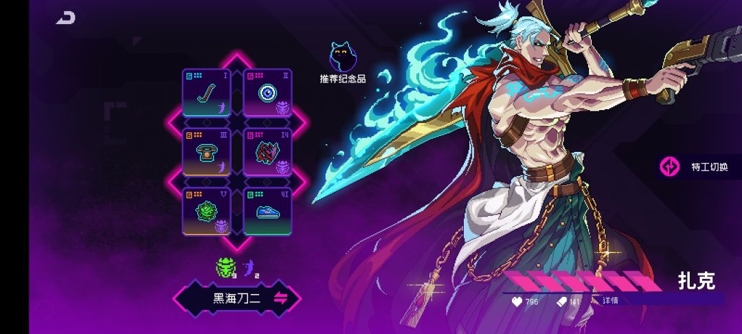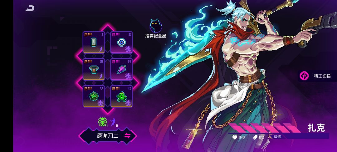 一号位带撬棍是因为撬棍和磨刀石增加的技能范围一样,并且磨刀石比撬棍更容易在宝物房刷到,运气好路上可以捡到磨刀石,四号位没有带雨伞是因为第六关伤害实在太高,竞速的话有时候明知道前面是弹幕也要撞过去,所以放弃雨伞了,滑板鞋增加移速用,这套尽量在第一个房间刷到一个刀二配件,路上捡一下刀一刀二配件就可以了。