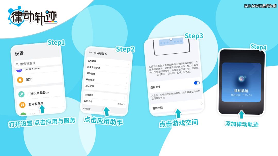 Kiwi建议各位小鸽子,在游戏前请先关闭系统手势,或者把《律动轨迹》移进游戏空间内,以防系统手势屏蔽游戏输入,造成惨案发生~ 以HUAWEI品牌为例,相关操作示意如下: