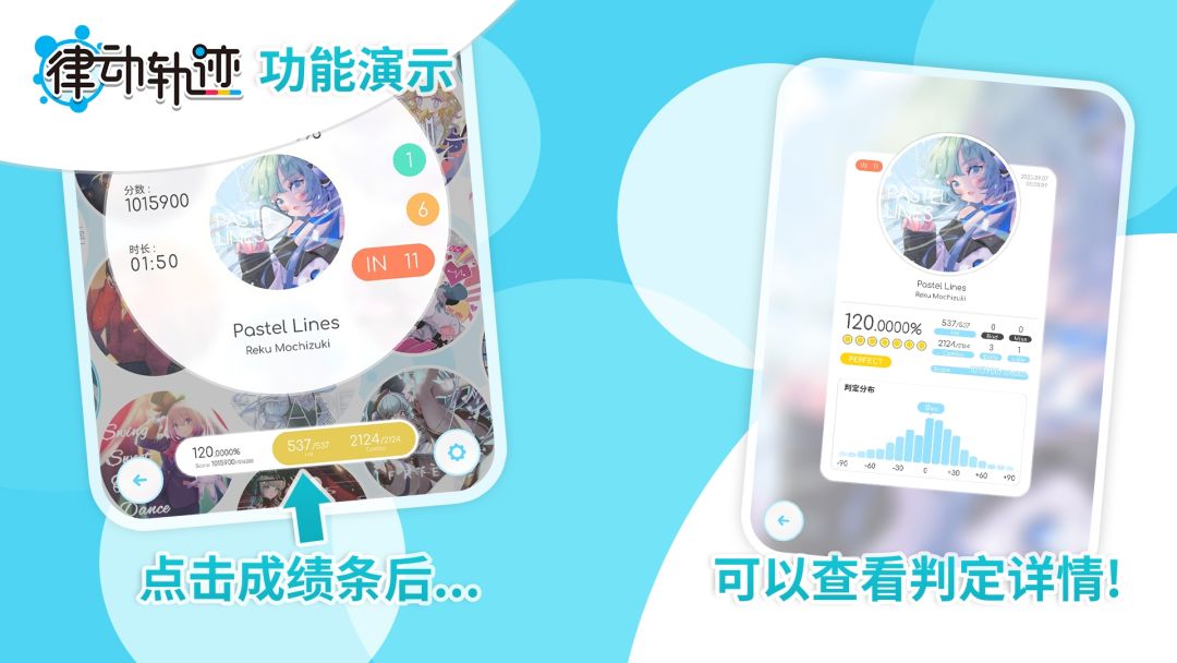 · 在歌曲结束后,点击成绩条即可查看判定详情!