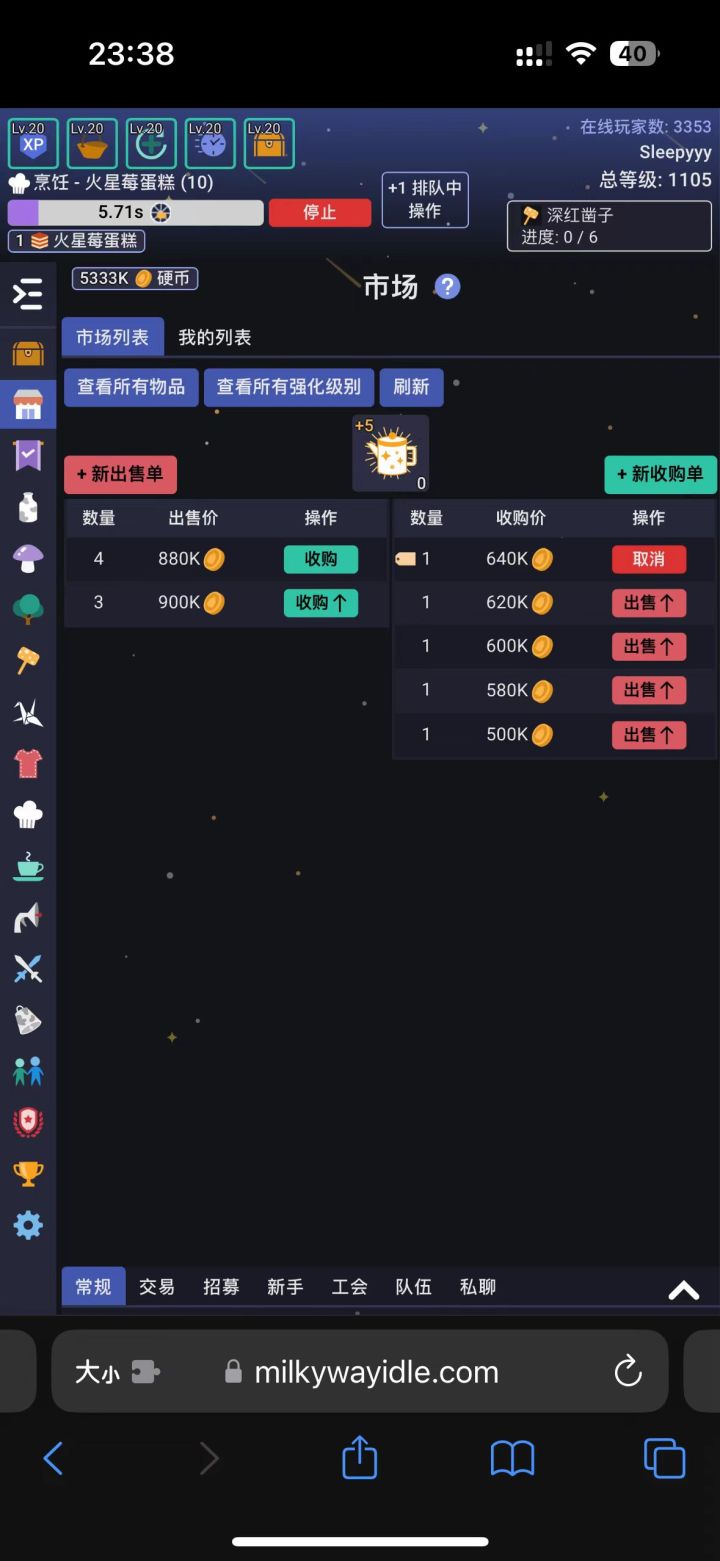 前文提过,这是一款melvor类放置型游戏,如果玩过的可能会对这个游戏的主体非常熟悉,游戏内容由:生活类与战斗类组成,而作为联机游戏,还添加了交易市场、任务系统、社交系统等