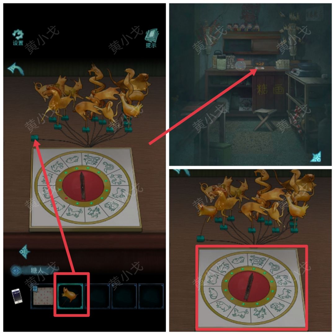 17.点击桌子上的生肖盘,放上【糖人】;转盘转动,指针指向“龙”,尾指向“狗”(随机的)