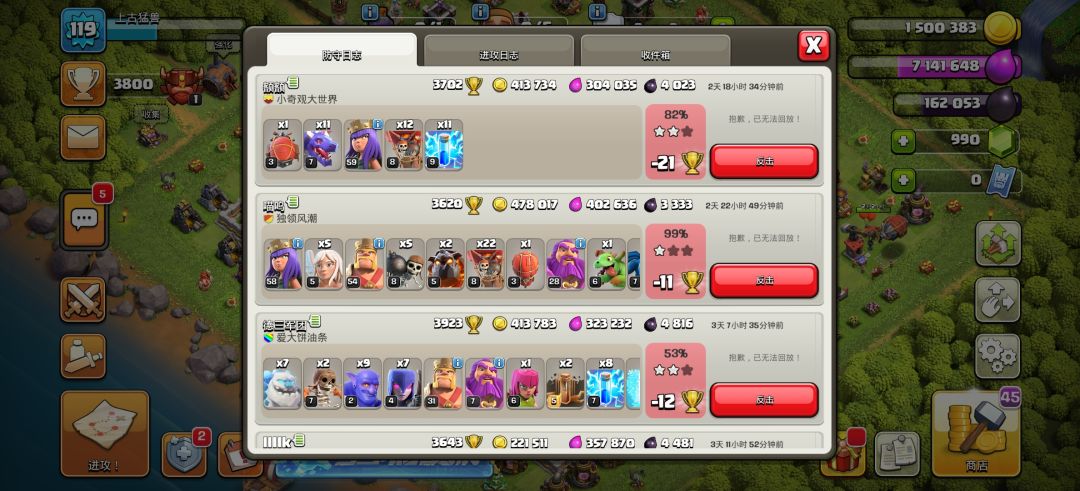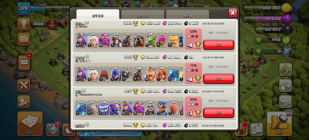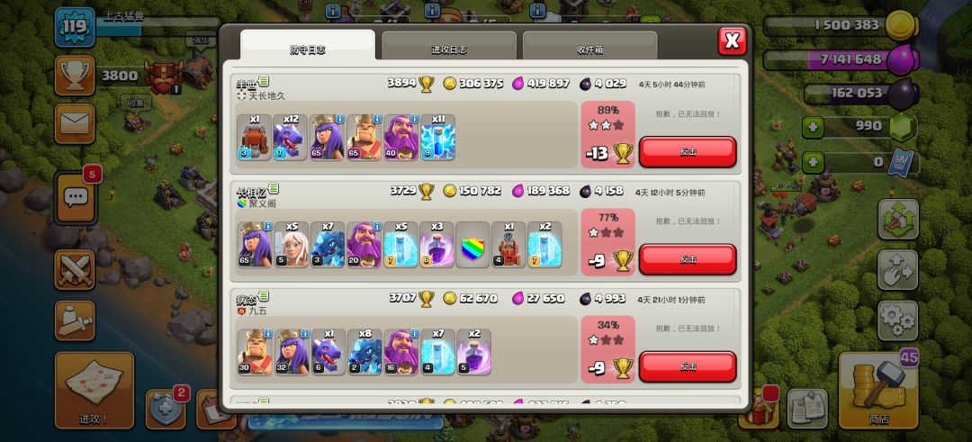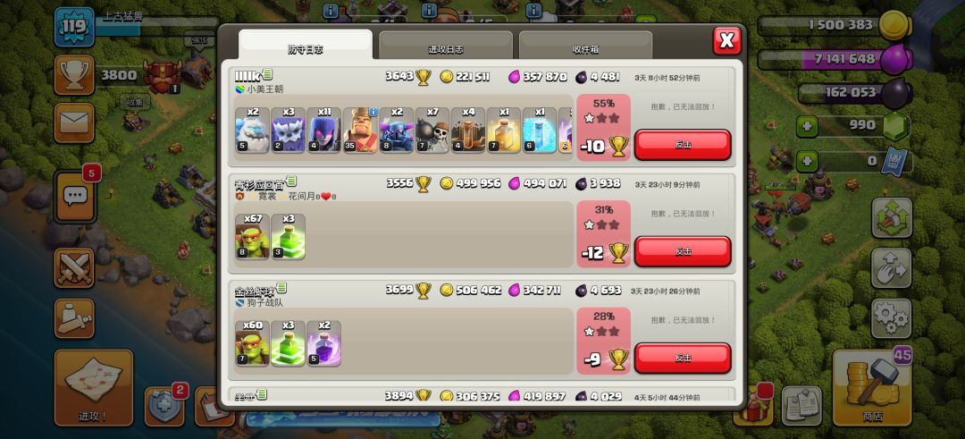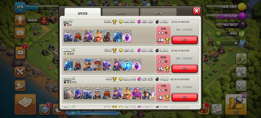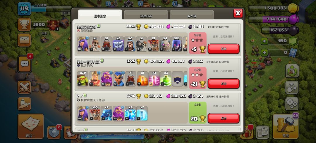 本人自己改的阵型,不论是资源阵或者部落战都能很有效防的三星