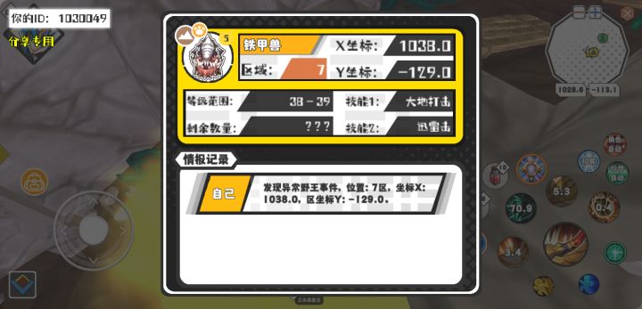 幸运时刻分享! 【野王异常出没】4月30日下午9点 - 铁甲兽【强度5】 【7区】 【X:1038.0, Y:-129.0】