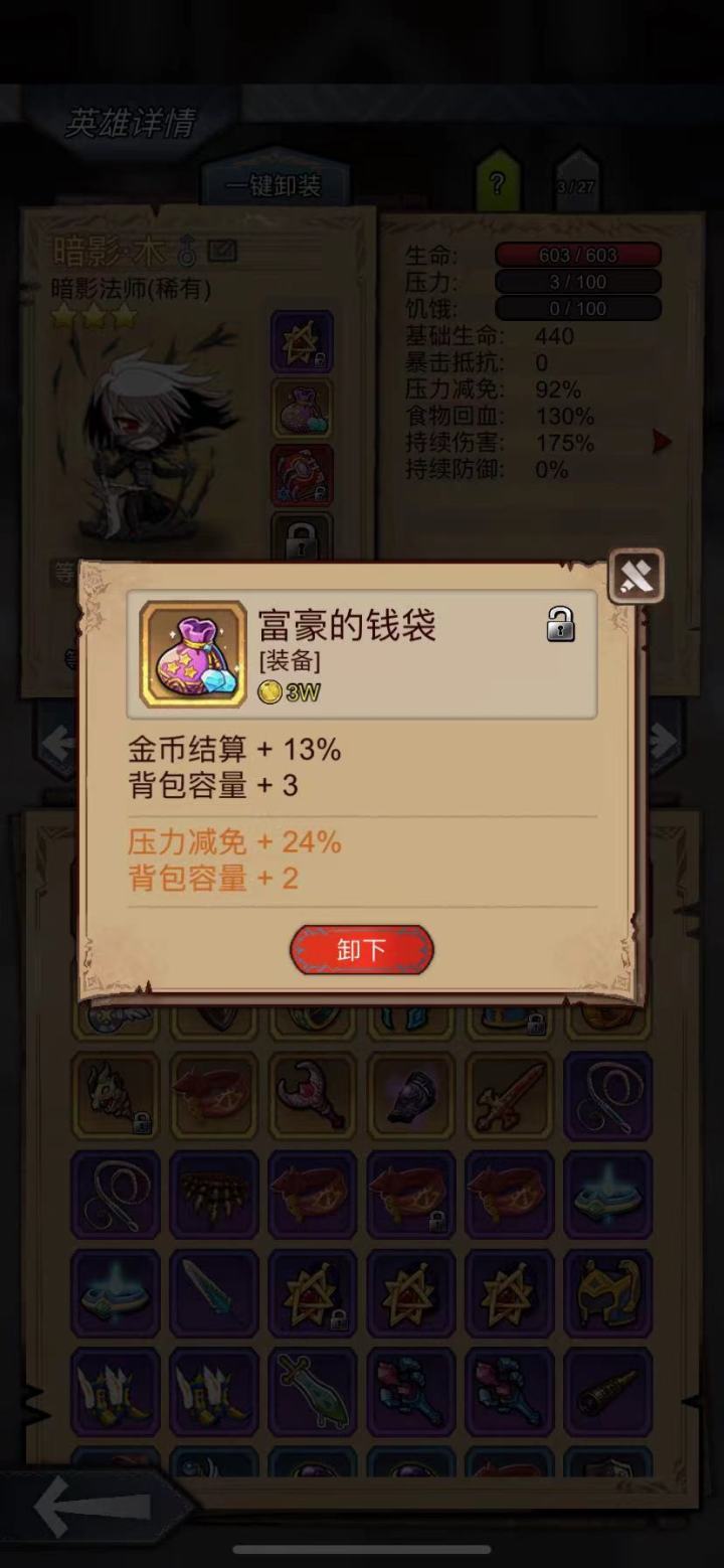 我们再来说说前期紫装,装备词条,优先级压力>背包>金币>移速