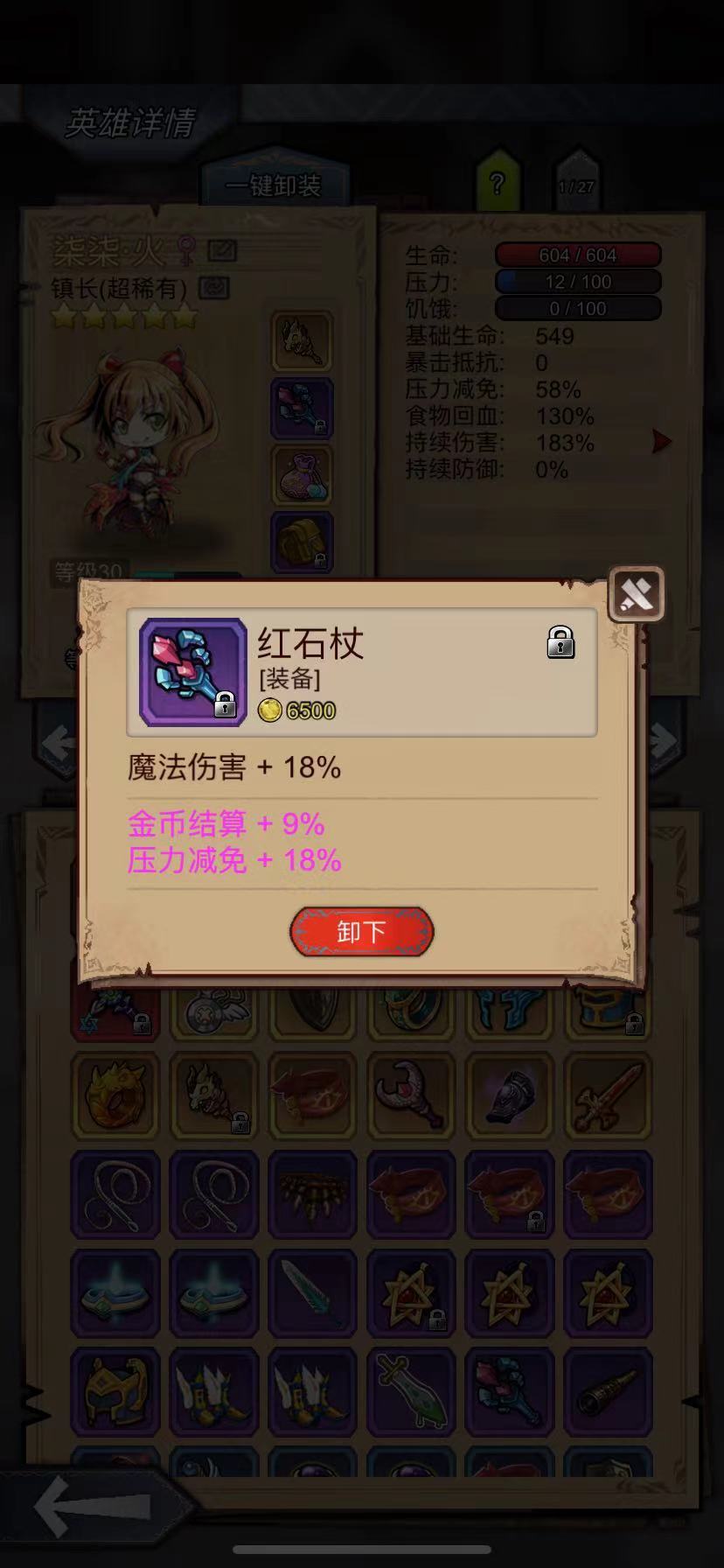 然后有个特质的冷静,(-30%压力)这个基本上是95%以上的英雄都需要的,上篇有讲过,好了那么我们看到压力值16%-20%的减压紫装我们都可以扣下来了