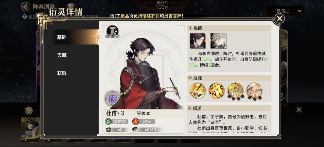 本阵容拥有完美的连携,靠着李白、杜甫、太平公主技能都自带着百分之20的破甲效果加上完美连携效果可在第二个回合时帅先秒杀一个后排。前期推本拿资源效果也是极好