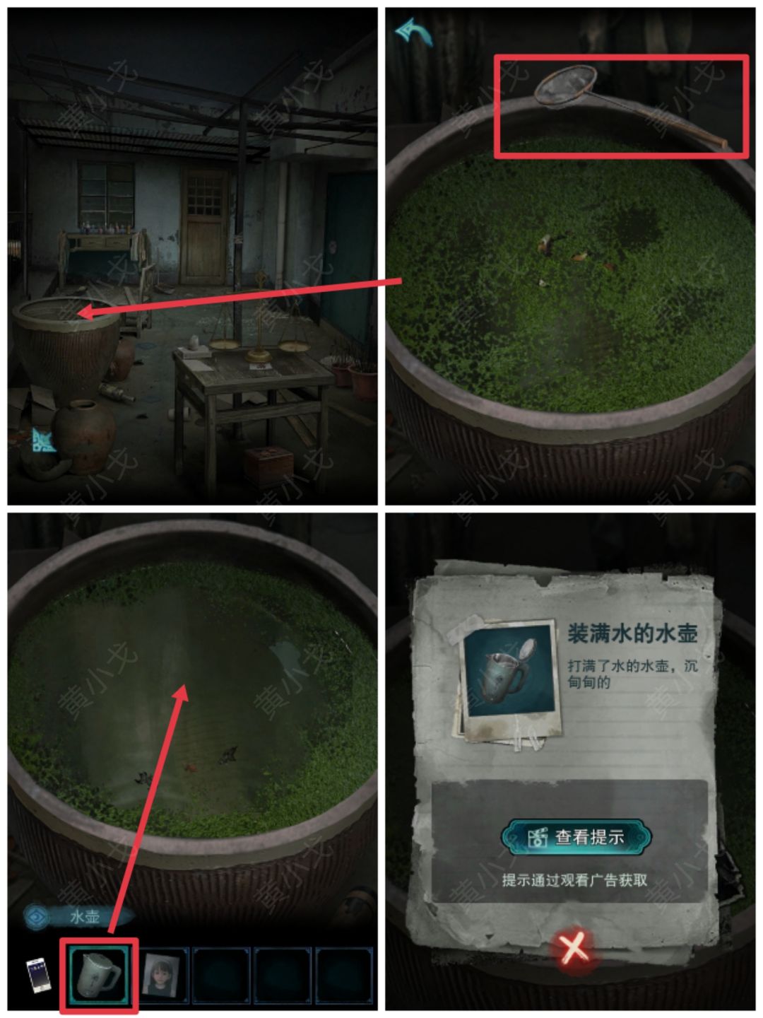 26.点击水缸,用旁边的网捞掉沥青;用【水壶】装水,获得【装满水的水缸】