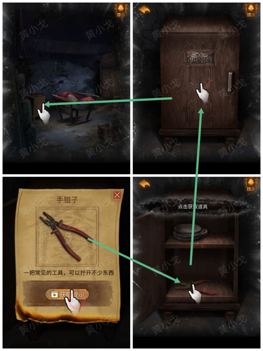 1.点击柜子,打开,获得【手钳子】