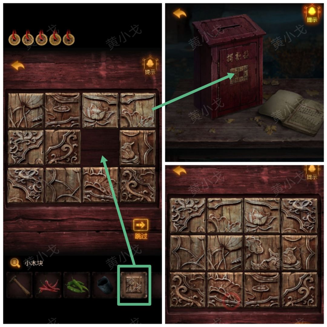 13.(房子外)点击桌子上的捐款箱,放入【小木块】,完成拼图