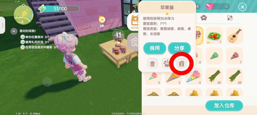 我们在包包里面点击需要使用的食物,然后点击红圈按钮