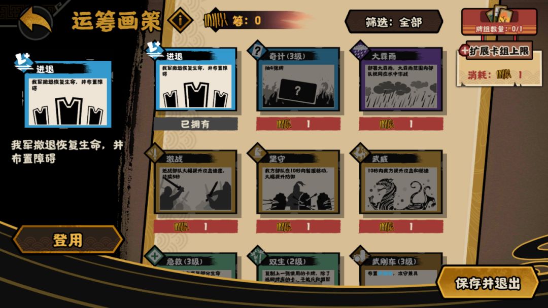 机制上:在这次剧本中,引入了之前汉末三国主剧本演义玩法中的奇策商店,可以通过消耗特殊资源【筹】,换取强力卡牌,进而帮助各位王上轻松取得胜利。至于筹的获取方法,主要有以下三种:1.在特定的剧情战斗中取得胜利。2.施行特定的政策获取。3.完成当前阶段所有任务,主动进入下一阶段。