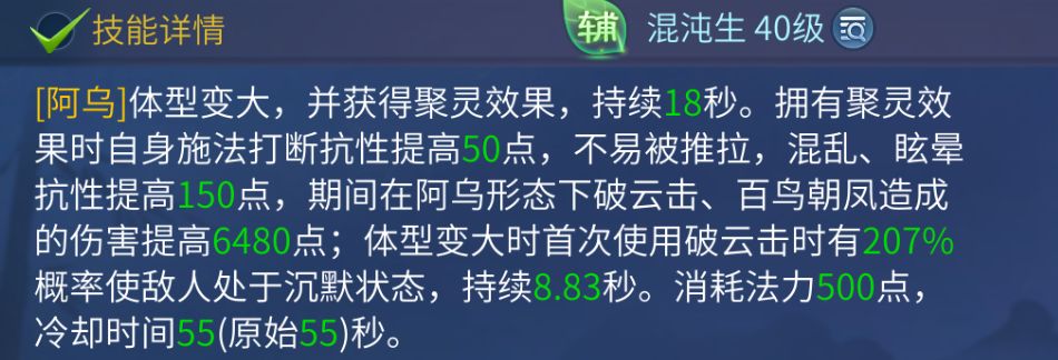 *混沌生状态下阿乌首次使用破云击有一定概率使敌人处于沉默状态