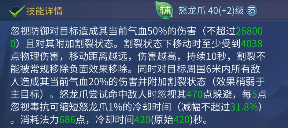 男形态的攻击距离只有2.5m,且定身为突进技能,很容易被异人石化到,因此需要在阿乌沉默到异人或者异人石化技能释放以后,才可以变男身,双音标记输出,百绝刮伤害,留一手尘外幽绝撤退。