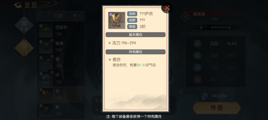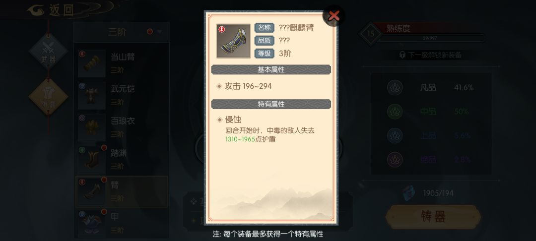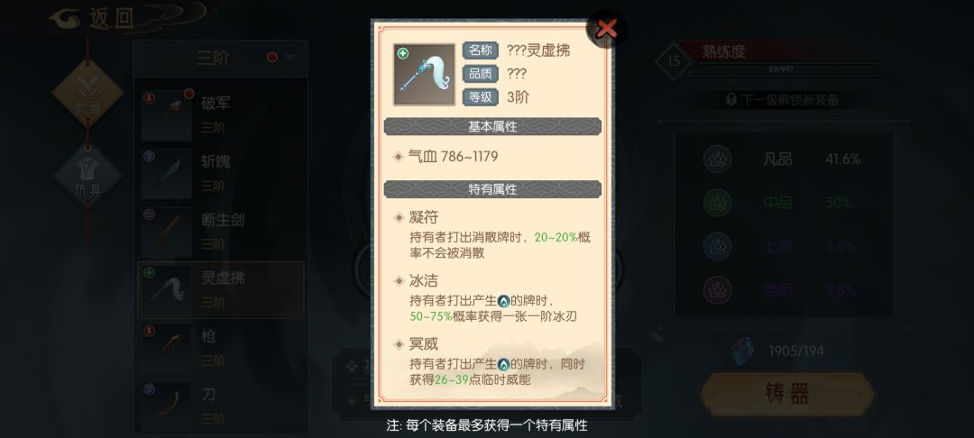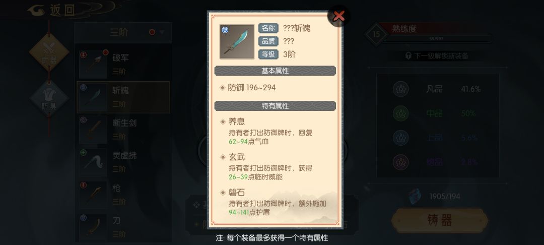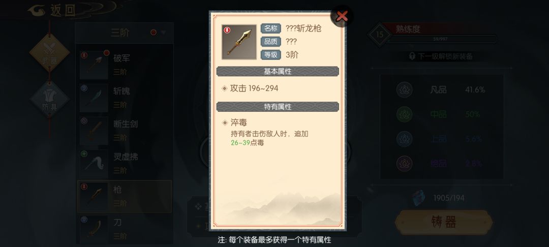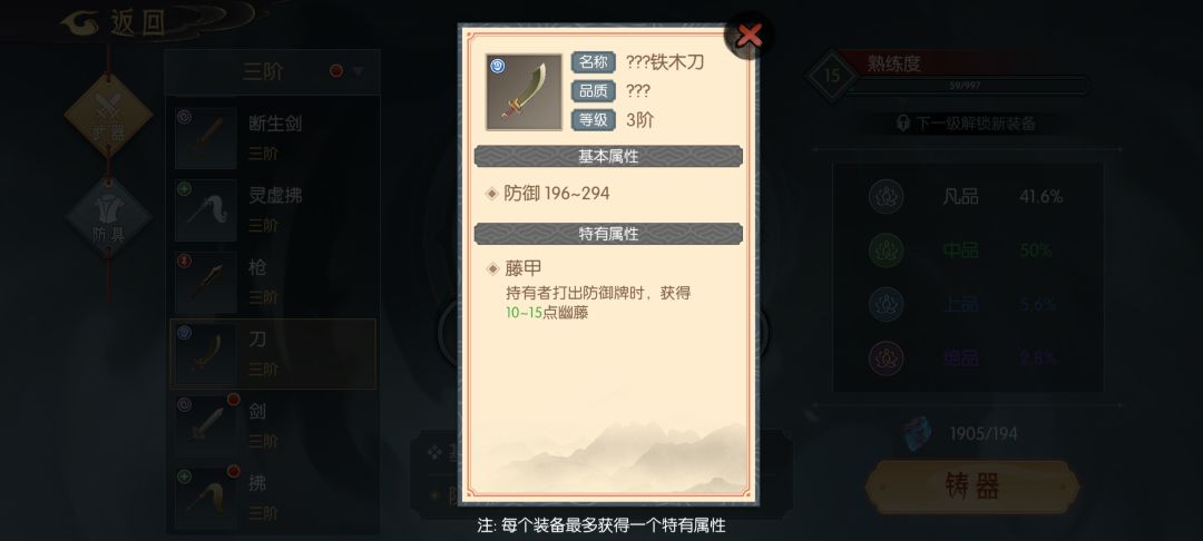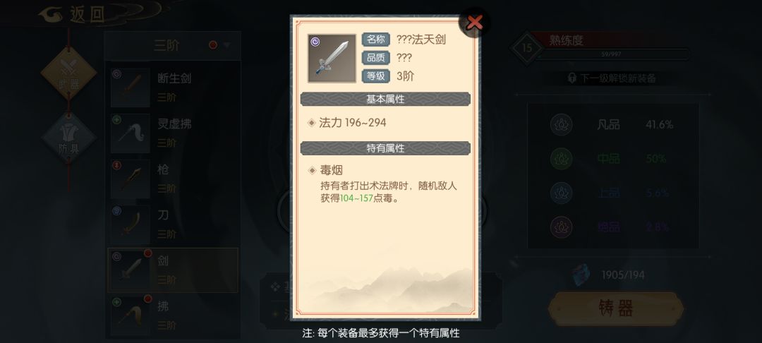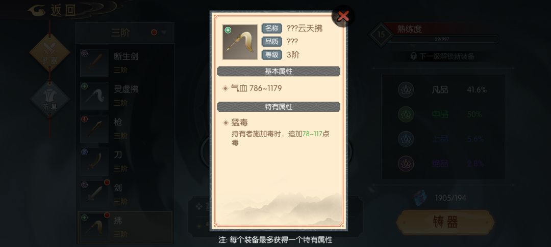 武器(全部为打造可得,也可在坊市购买)