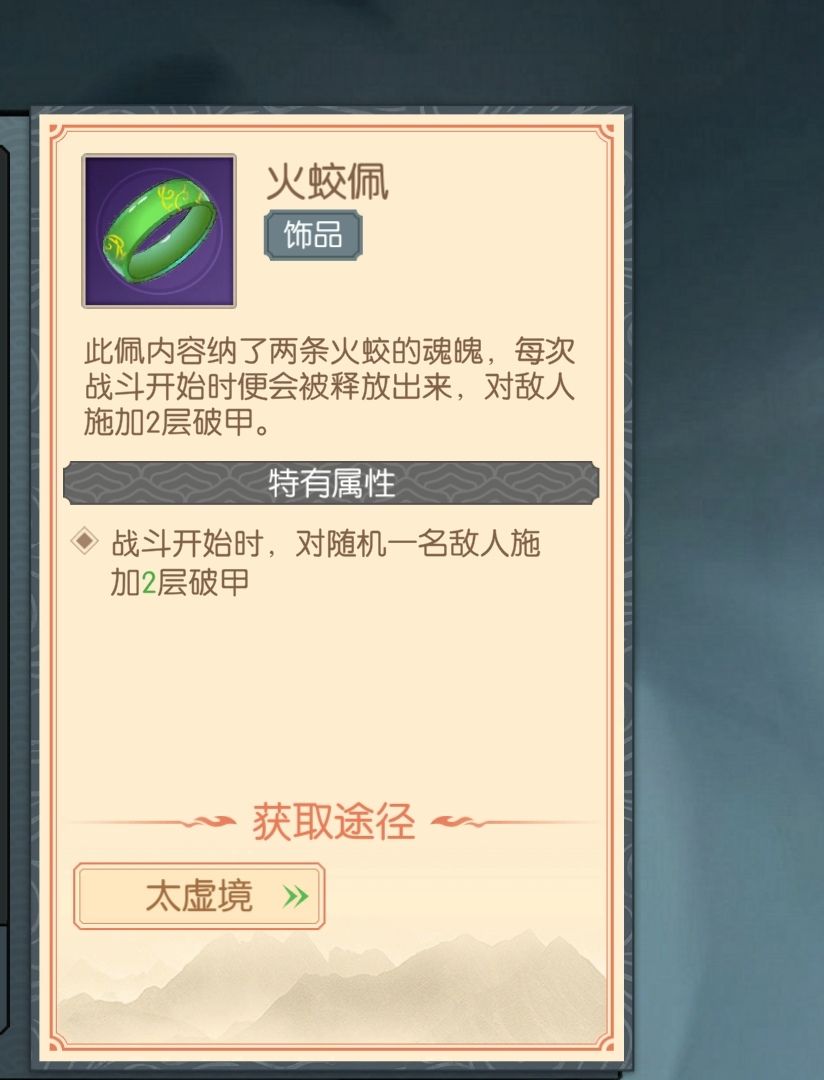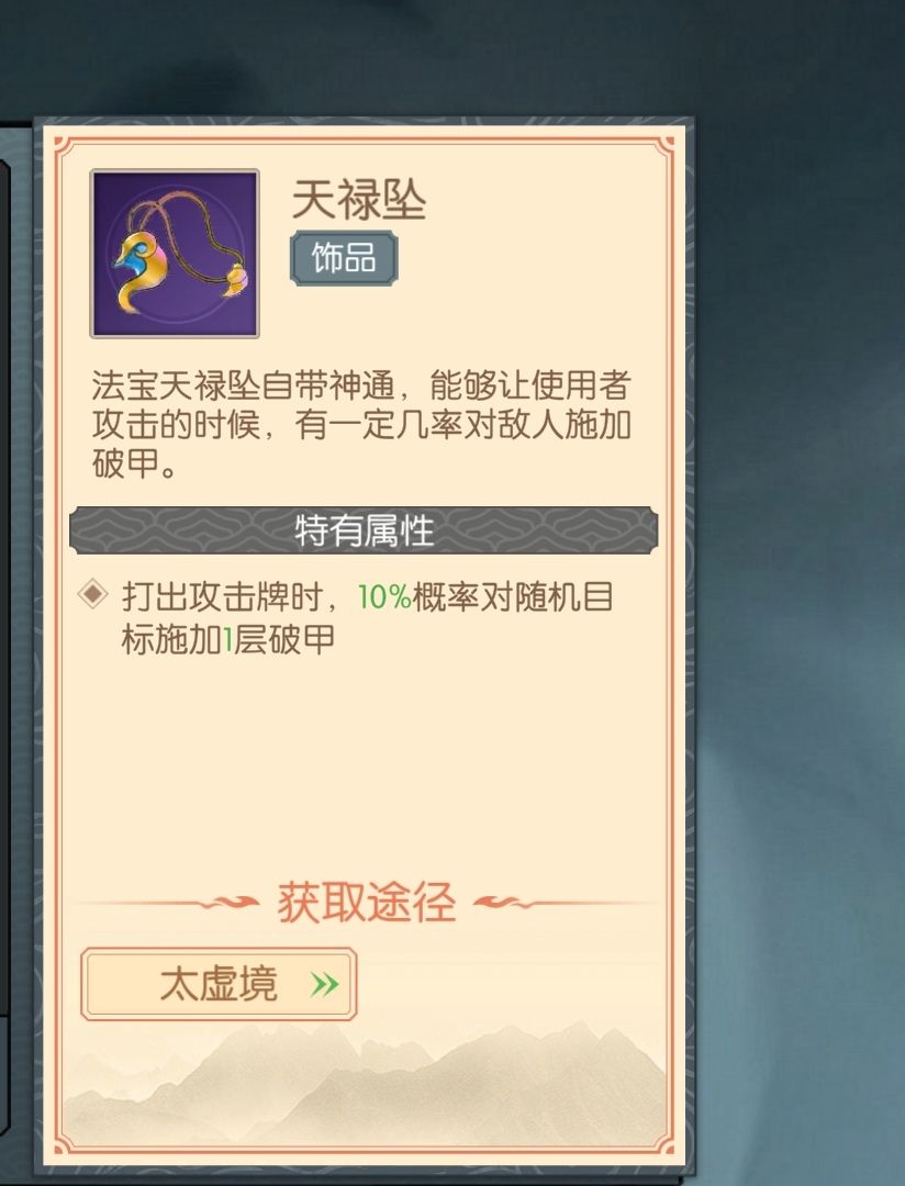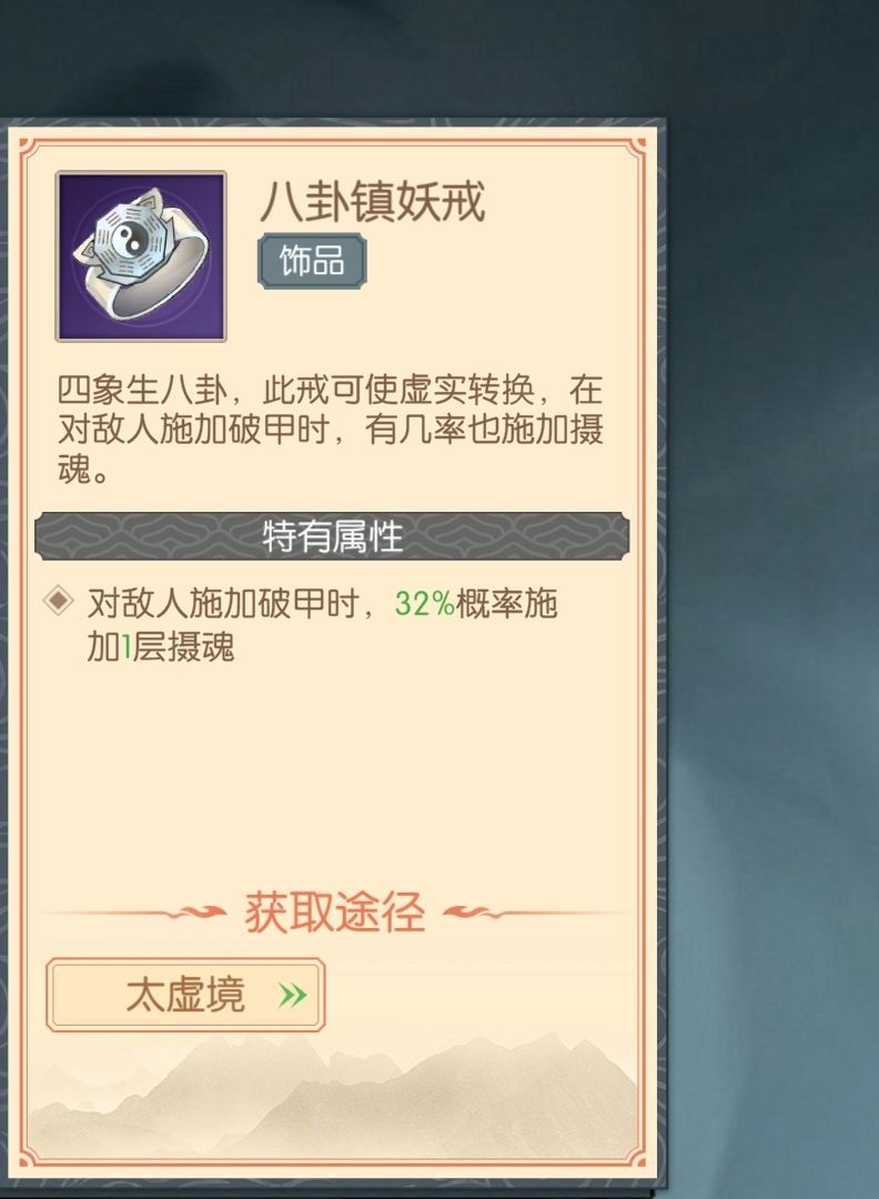 饰品(无法购买打造,只能在飘渺台太虚境掉落)
