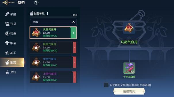 需要消耗采摘工具和体力,采摘工具可以通过银魂币购买,获得的物品主要用来制药。 推荐等级:三颗星