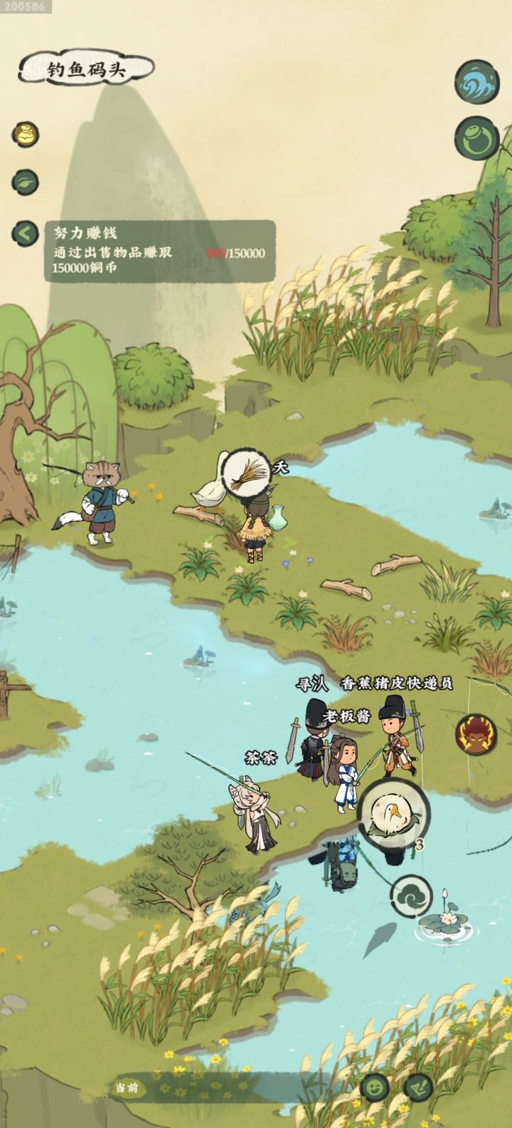 钓鱼码头的资源有干草、木材,【胖头鱼】(喵的祈愿任务鱼),【麻鸭】,【鹅】,可以摘【金莓】