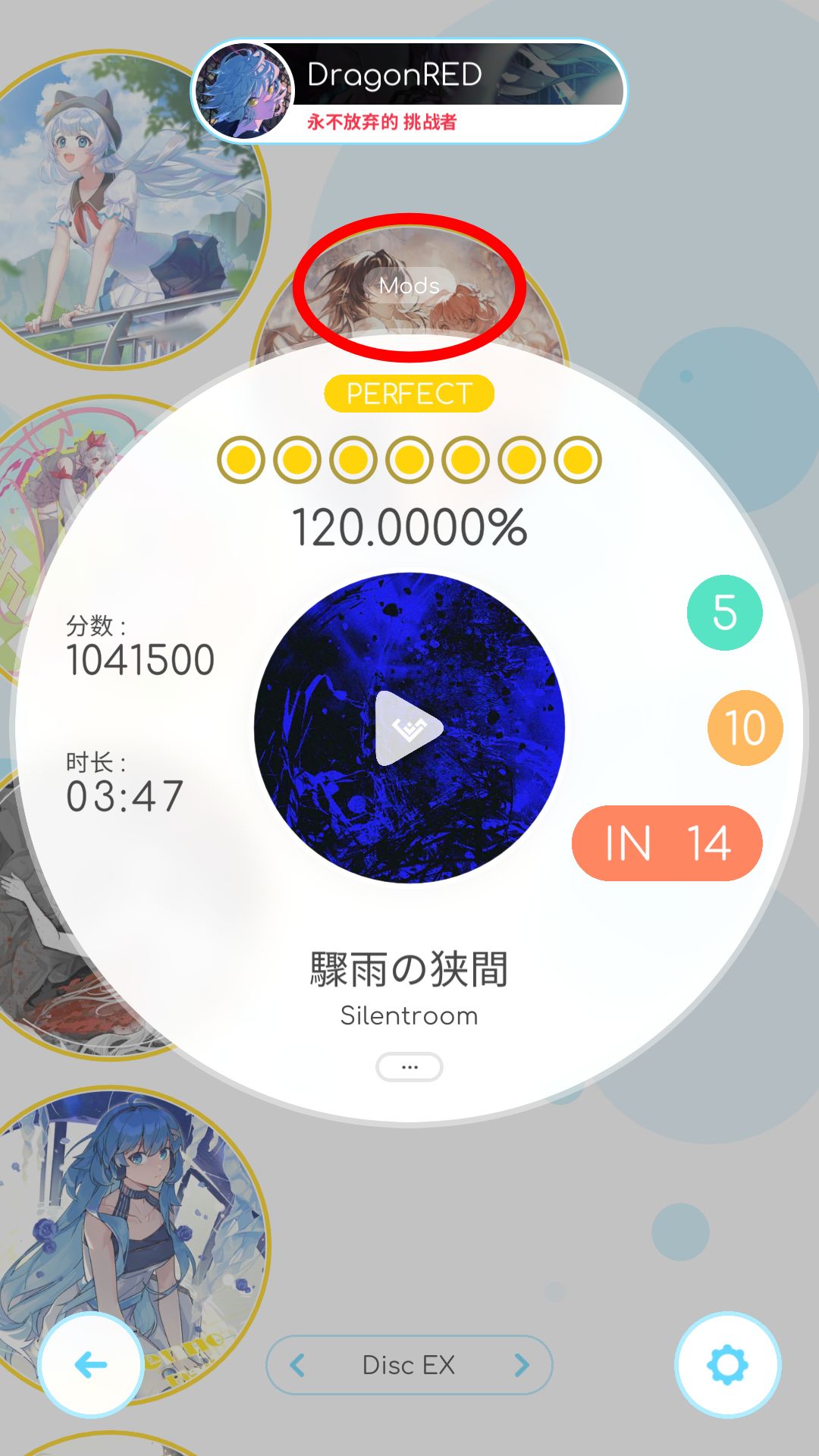 2.将对应曲目HD难度达到110%以上
