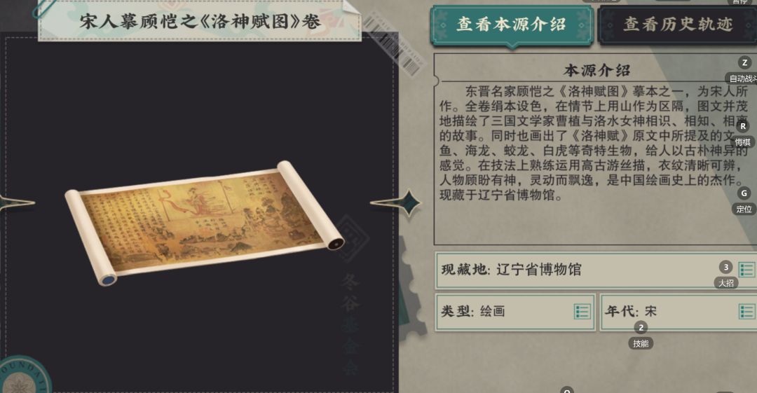 ps:游戏中实装的洛神赋图是辽宁省博物馆中的藏品,实际上《洛神赋图》分别作成于不同时代,分藏在各地博物馆。不知道其余部分后续游戏会不会实装呢?