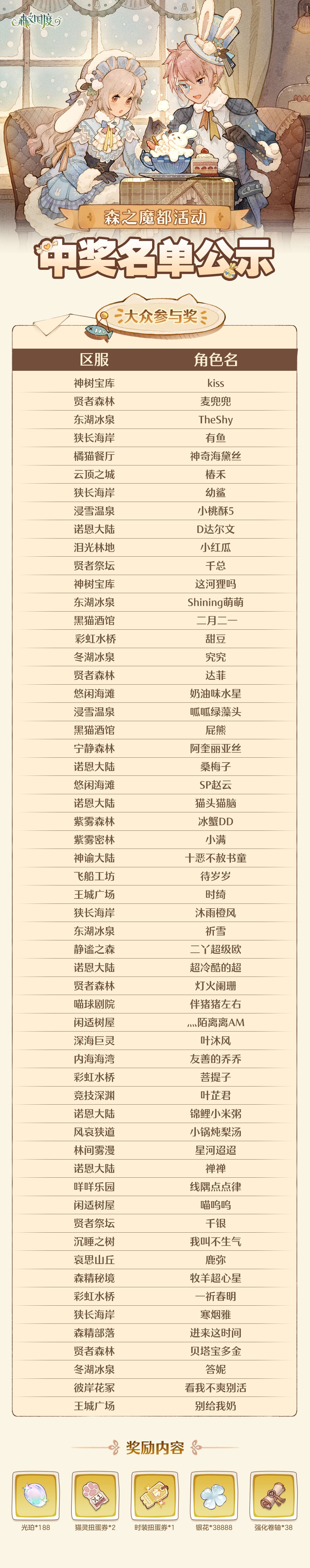 中奖名单丨森之魔都活动中奖名单公示