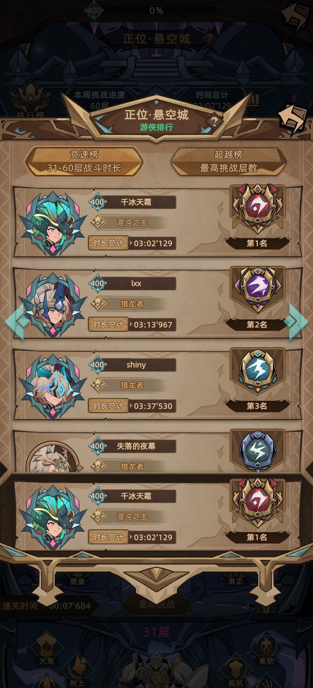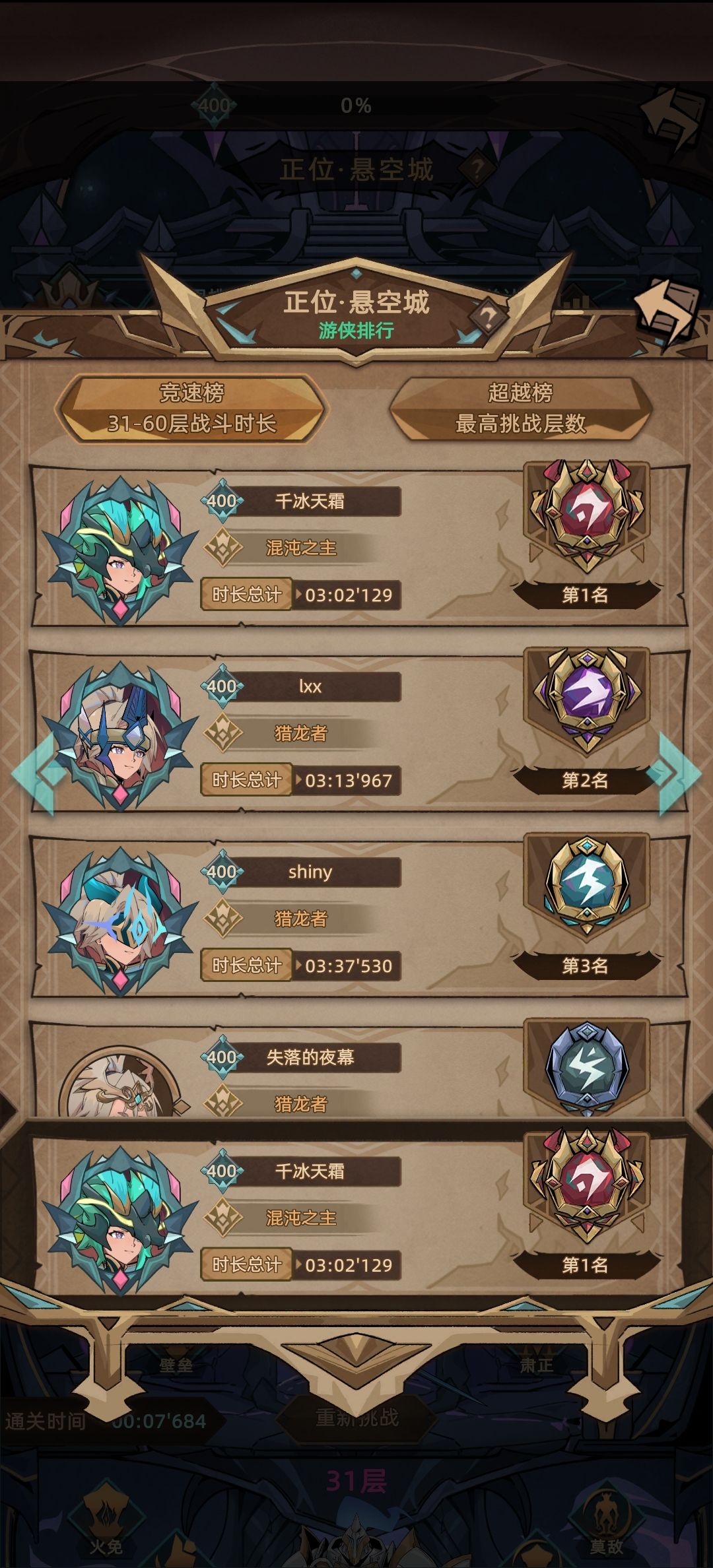 游侠混沌之主正位悬空城竞速三分钟以内