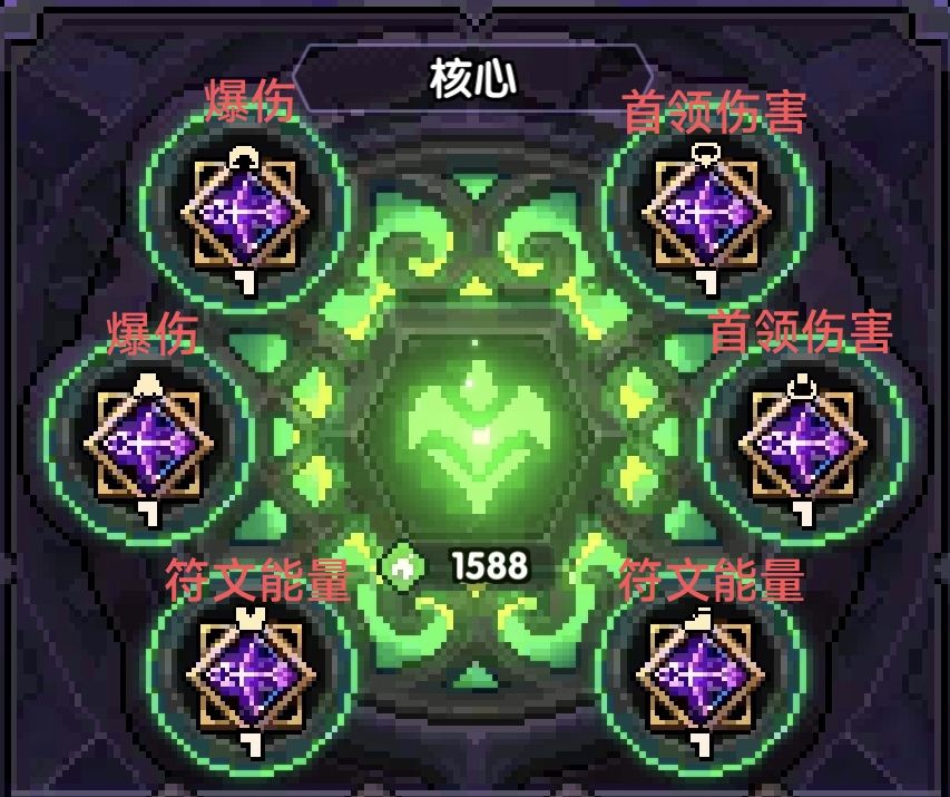 提供12%攻强增幅,同时减少100%减伤,如果出现暴毙则换回虚空核心。