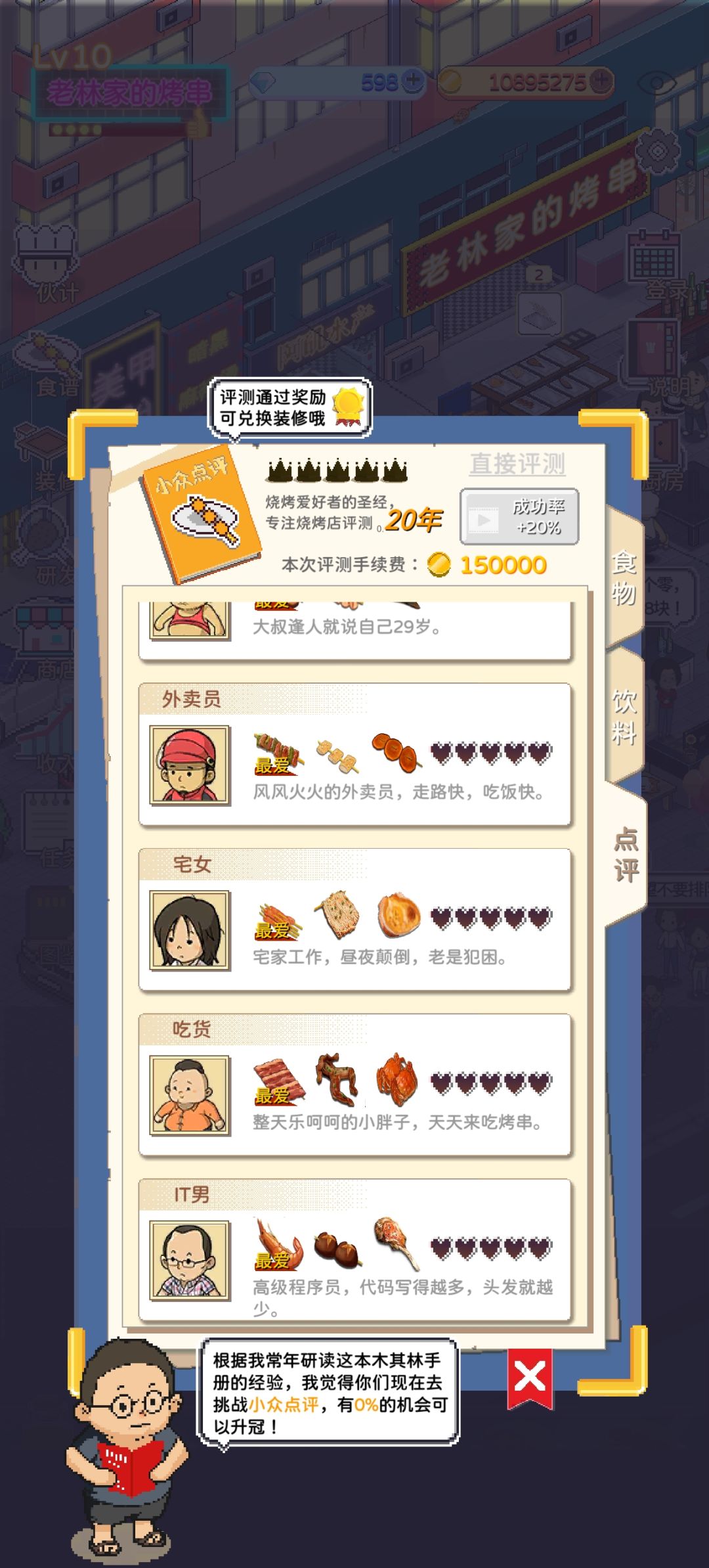 小卖部阿姨:1.烤牛蛙 2.烤田螺 3.蒜蓉生蚝