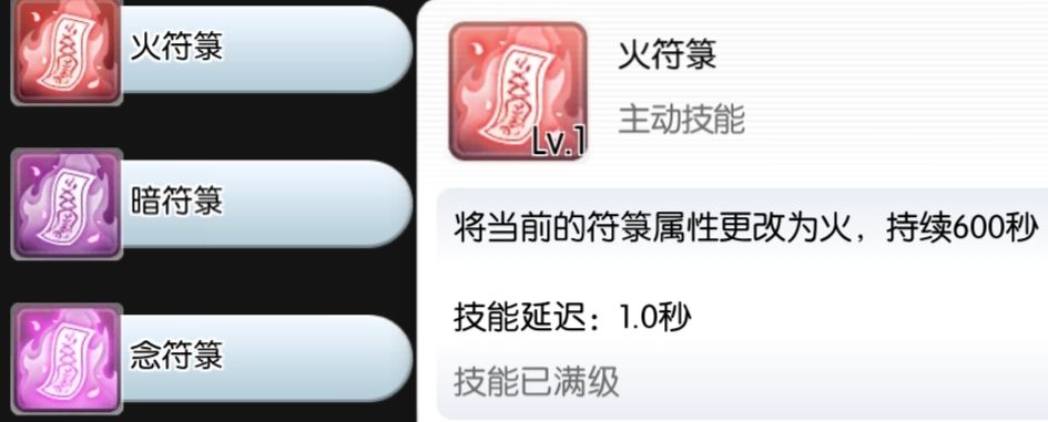 *把点击切换,改为冒险技能里的三个小技能,可以直接切换成指定的符箓。跑动时使用依然有几率使用失败,建议站着不动时使用。