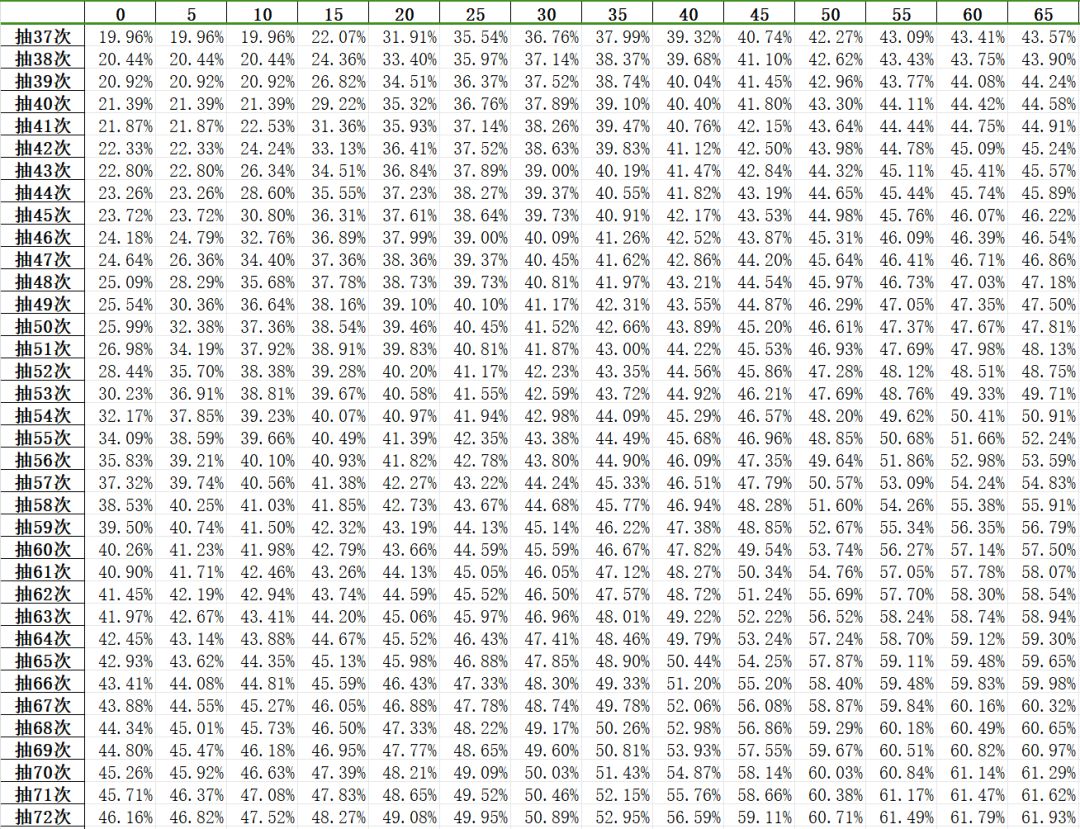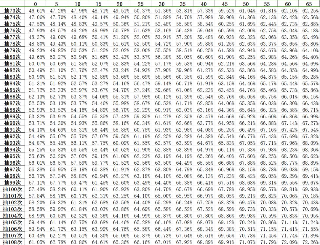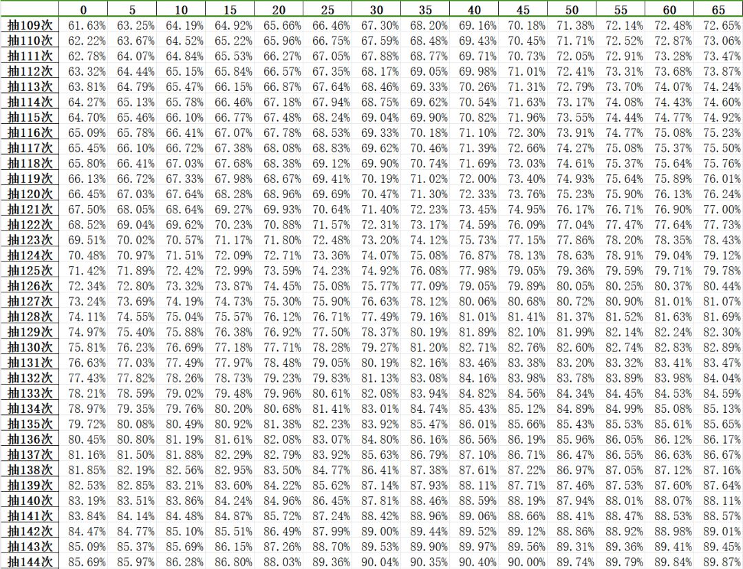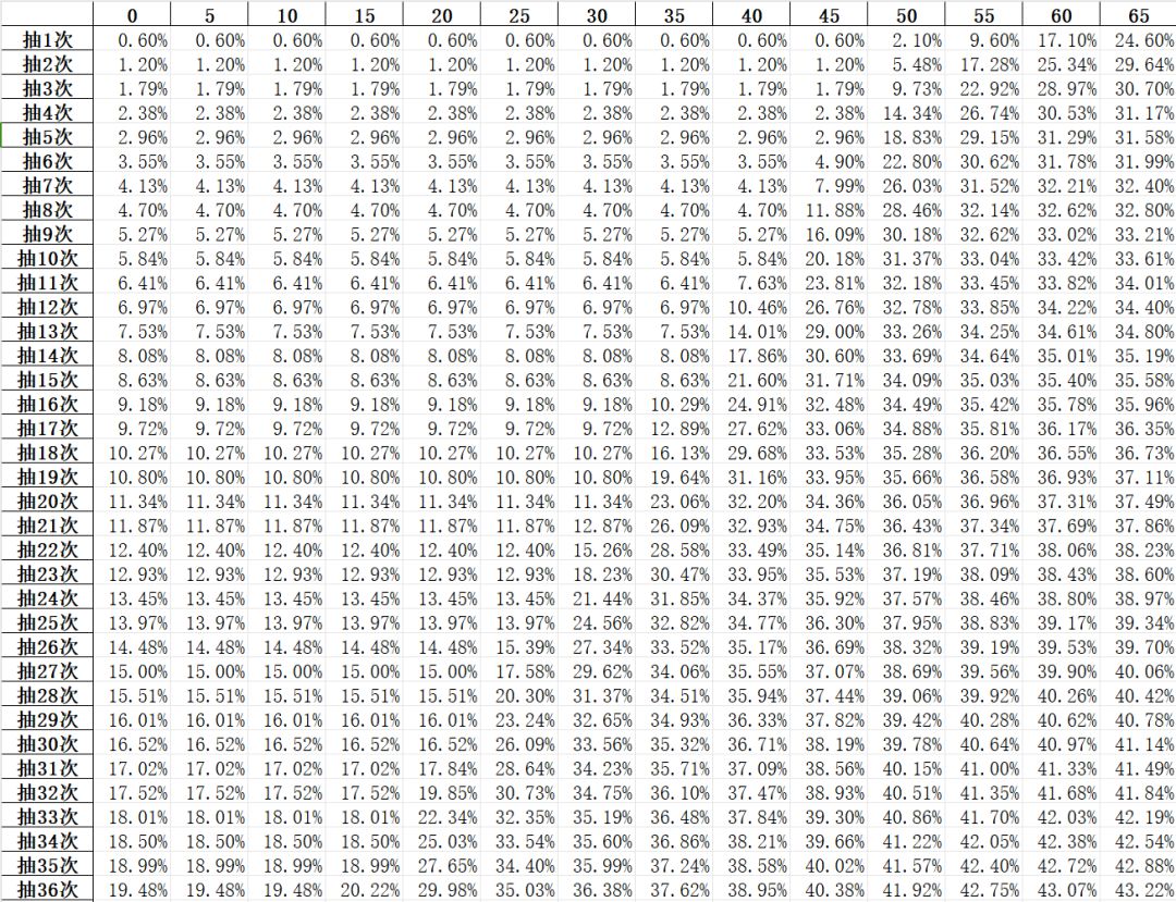 结果如下图(行索引表示“当前未出金次数”):
