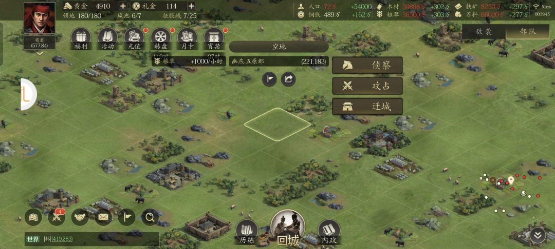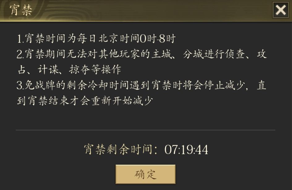 本期《王者之心》的主要内容,本来是想趁着半夜的功夫偷摸捉拿吕布的得力干将,陷阵营的统领高顺。却不料系统提示半夜为宵禁期,不能攻打其他玩家的主城。既然玩家的主城有保护机制,咱就只能在野地里摸索一番,看能不能找到惊喜了。