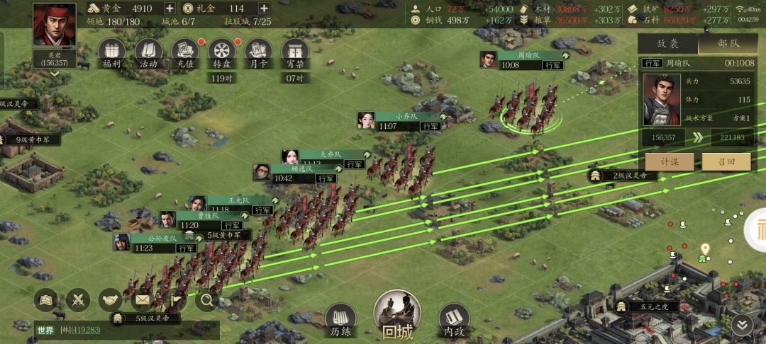 对于《王者之心》的老玩家们来说,十几分钟的行军等待时间很容易就消磨掉了,甚至还有点不够用呢。修补城防、升级建筑、强化装备、合成战法、宝石镶嵌、整合物资、玩耍转盘、领取俸禄、军营募兵,这么一通操作下来,派出去空地上打野的轻骑兵队早就到地方了。