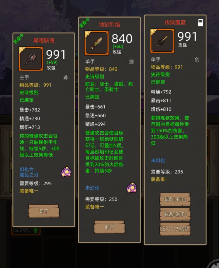 2.多目标新红剑最好用,每秒aoe同时还能吸血保命。( 特别是295首领)