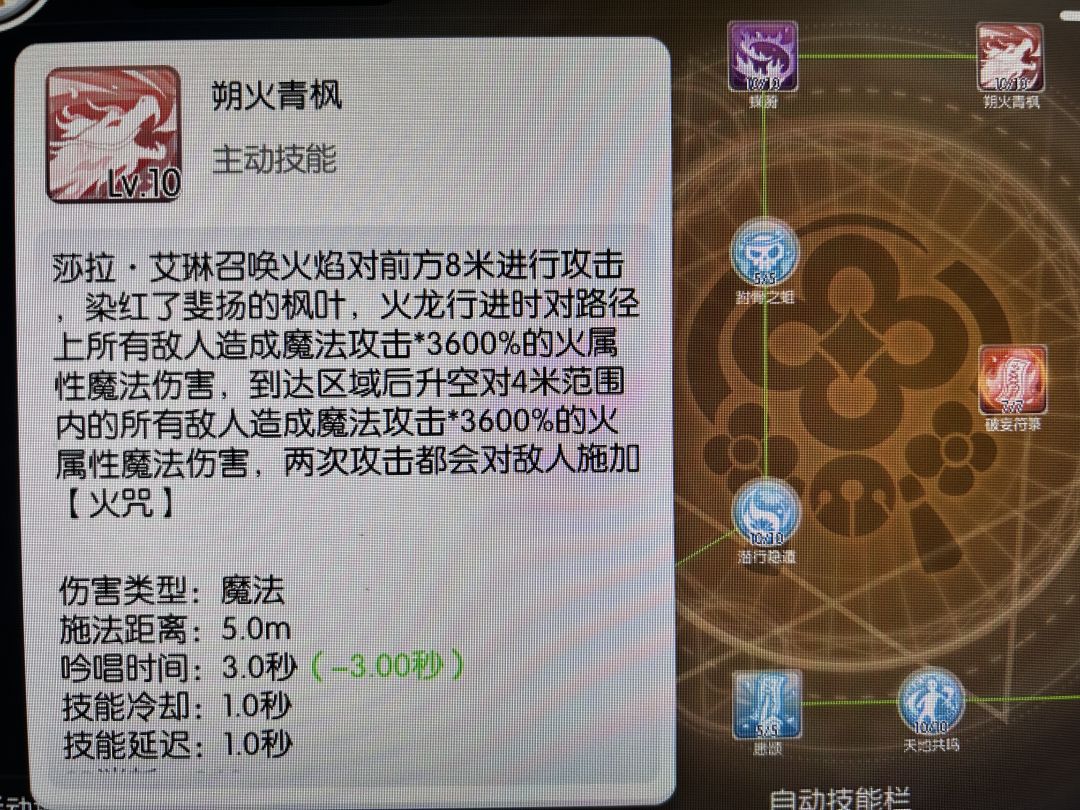 1,朔火青枫——技能描述出现了8米,4米,5米,玩家具体要在几米进行攻击呢?玩家想把伤害打完整的话,就必须用眼睛时刻测量自己与怪之间的距离,然后找一个8米,4米,5米的合适位置进行输出。如果玩家不在混乱的输出环境测量出具体位置的话,那这个技能只能打一半的伤害。这么多年过去了,心动的癫公癫婆们还是不忘初心,一直花式折磨法系玩家,这份坚持,我真的哭死。建议这个技能参考《暗黑破坏神4》的火法大招,或者直接在忍者的火龙上进行修改,目前的施法方式非常别扭。
