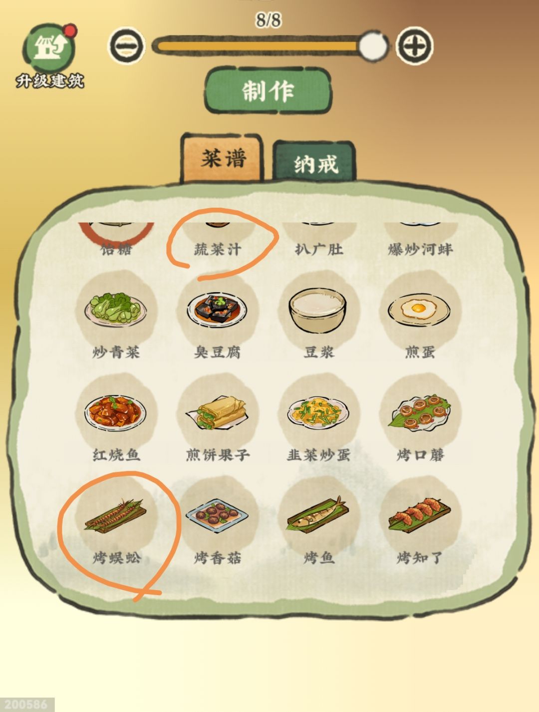 )。如图2是蔬菜汁(韭菜3香菜3),图3是烤蜈蚣(普通虫干2),其中的普通毒虫干晾晒苍蝇、蟑螂、蝗虫获得,然后就会获得新的菜谱如图4,以后就方便做菜了。(做菜的时候选择纳戒一栏)各两份可以达到200价值,拿到最高奖励。